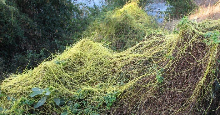 नहर के किनारे जितने भी हरे-भरे पौधे थे ,उन्हें अमरबेल ने पीला ही पीला करके रख दिया है।